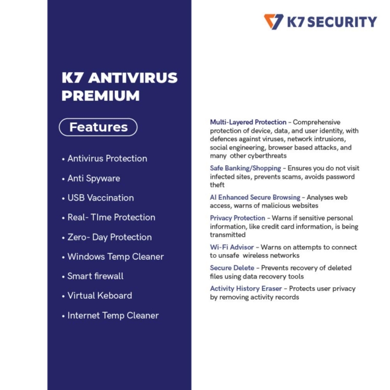 K7 مكافحة الفيروسات بريميوم -- 1 المستخدم ، 1 سنة (تسليم البريد الإلكتروني في 2 ساعة -- لا CD)