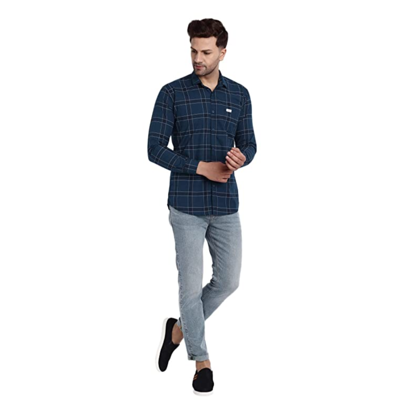 Majestic Man Slim Fit Cotton Casual Check Shirt for Men