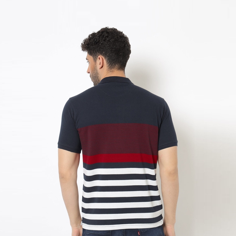 الرجال مخطط ياقة بولو القطن النقي تي شيرت