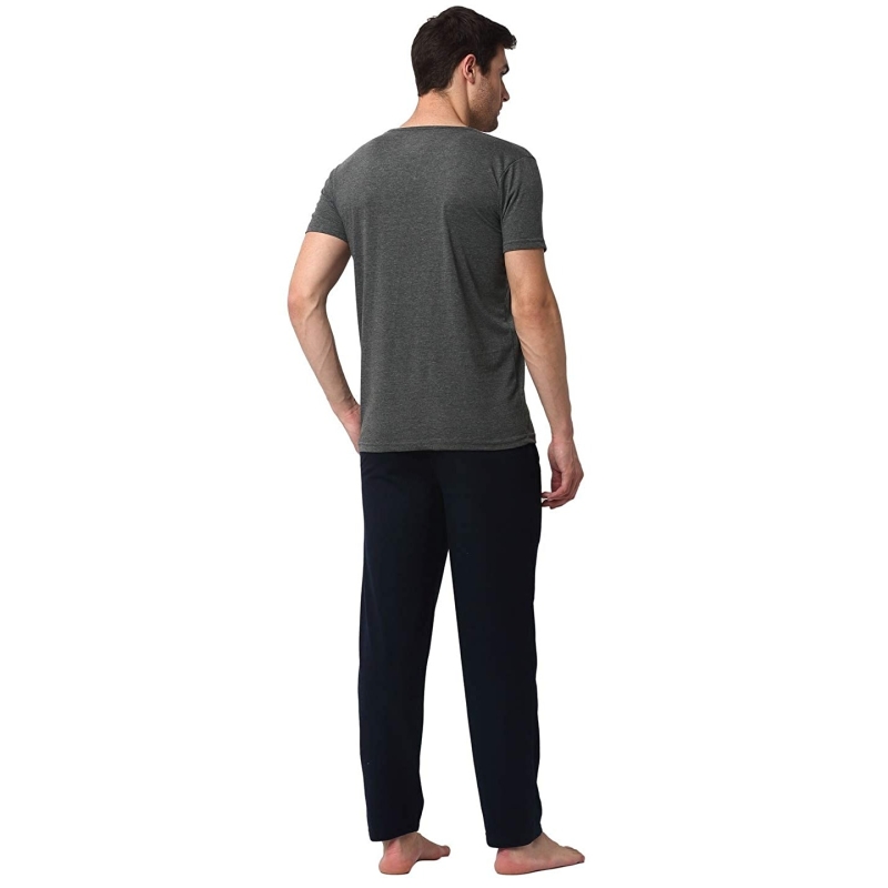 VIMAL JONNEY مجموعة بدلة ليلية من مزيج القطن للرجال مع تي شيرت برقبة على شكل V نصف كم