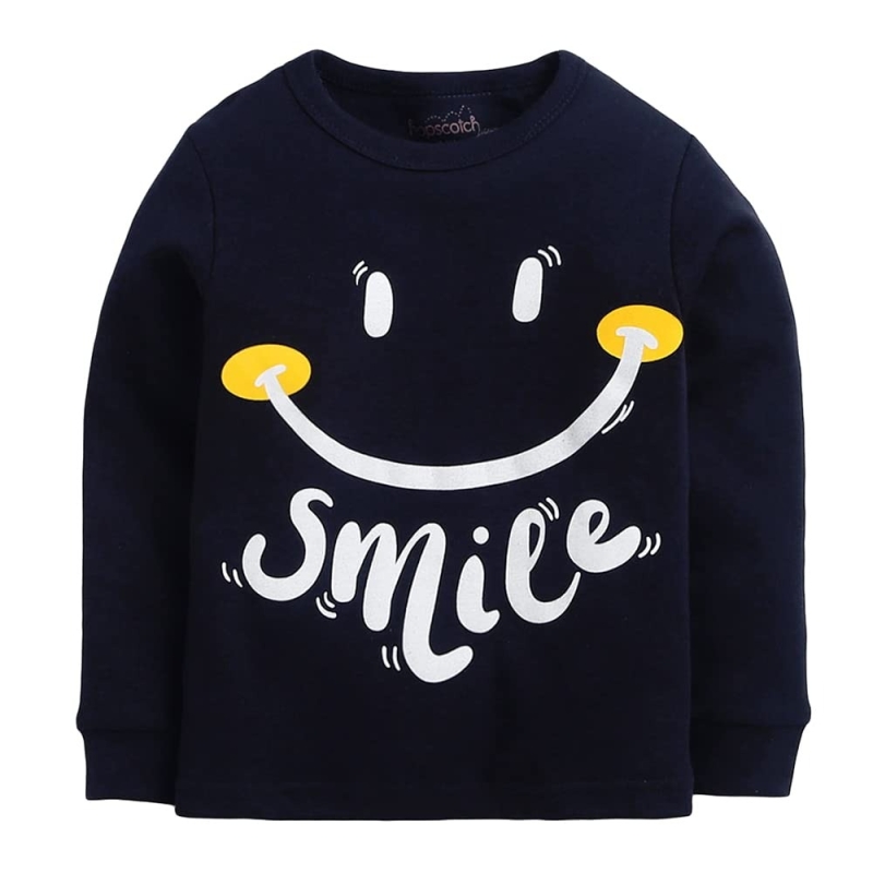 Hopscotch Boys Cotton Solid Text Print Top and Pajama Set in Navy Color