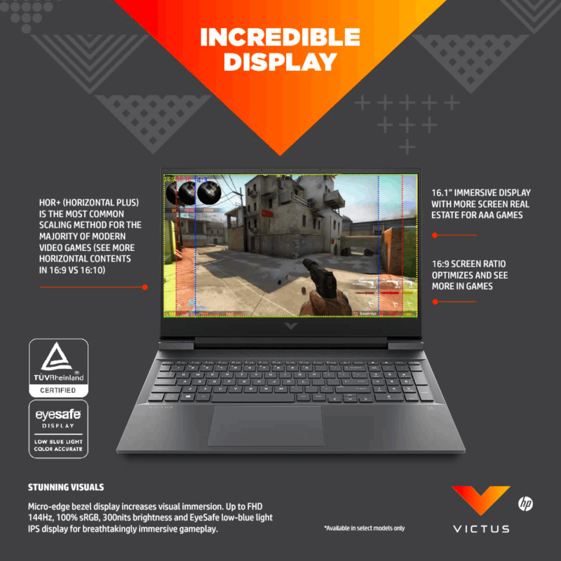 • Immersive Display– Enjoy vibrant, crystal-clear images with a 16.1” diagonal FHD IPS micro-edge display with anti-glare technology and a 144Hz refresh rate. It also comes with Low Blue Light, 300 nits.