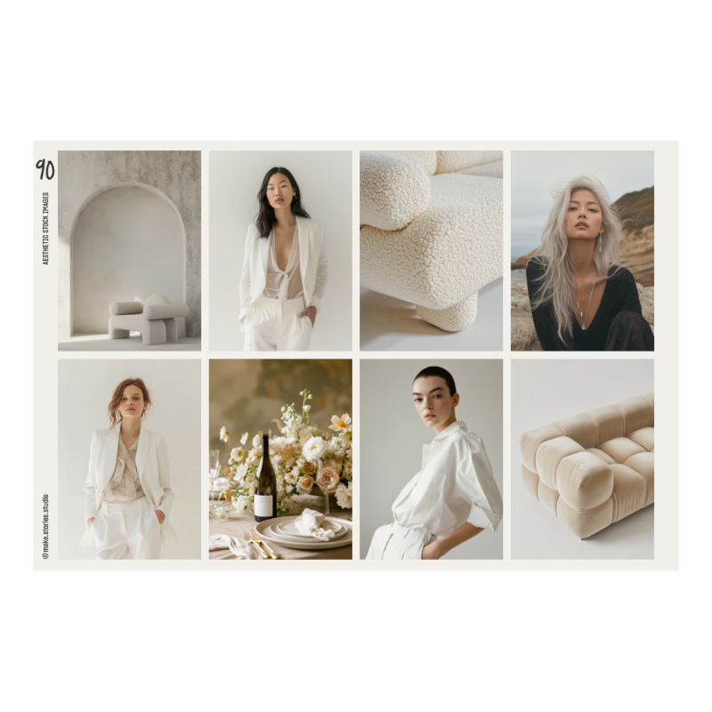 Elevate your brand's visual identity with this cohesive collection of contemporary and aesthetic stock images. The images range from beauty closeups, dreamy interior spaces, luxury sofas, and stylish studio portraits, to perfume, wine bottle vignettes, and natural skincare body images. Perfect to use as background images for branding, graphic design, and on social media, Instagram, Pinterest, Facebook, and Tiktok.