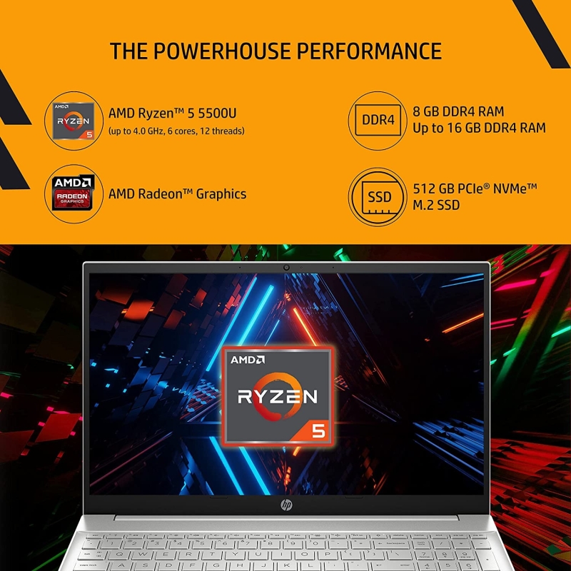 اتش بى بافيليون 15 ايه ام دي رايزن 5 - هارد 8 جيجا بايت/512 جيجا بايت SSD