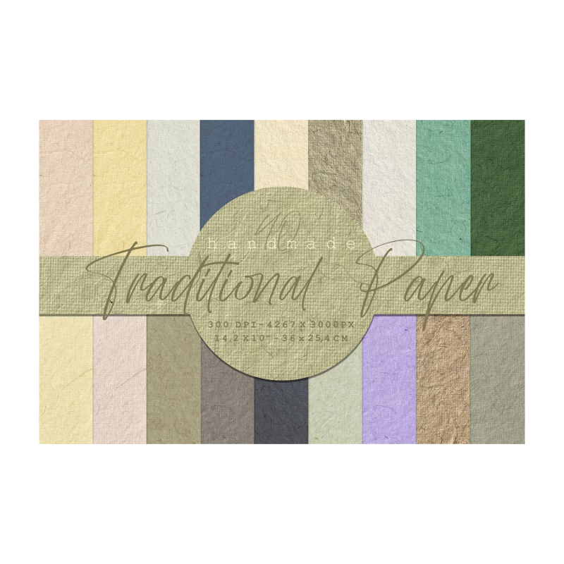 هذه الحزمة؛ يحتوي على 40 ورقة تقليدية مصنوعة يدويا وبالطرق التقليدية. تحتوي هذه الأوراق على نسبة نسيج عالية جدا وتختلف تماما عن الأوراق المصنعة. يتم غلي المواد الطبيعية مثل نشارة الخشب واللحاء وسحقها ، بعد سلسلة مرهقة من العمليات ، يتم الحصول على الورق التقليدي. يمكنك بسهولة رؤية ألياف اللحاء ، وهي رقيقة مثل الشعر في نسيج الورقة.