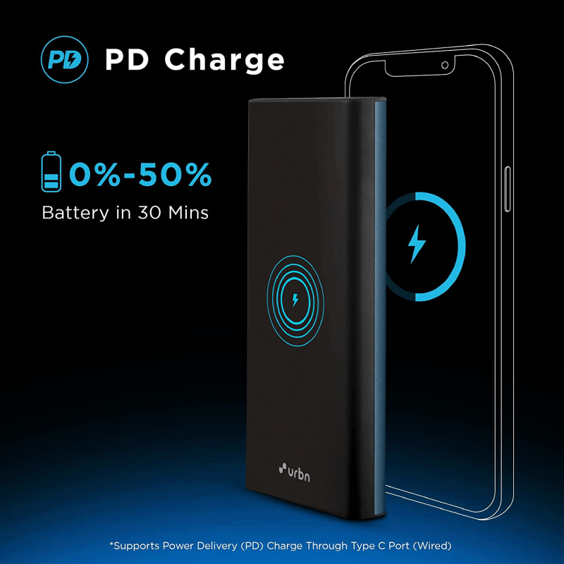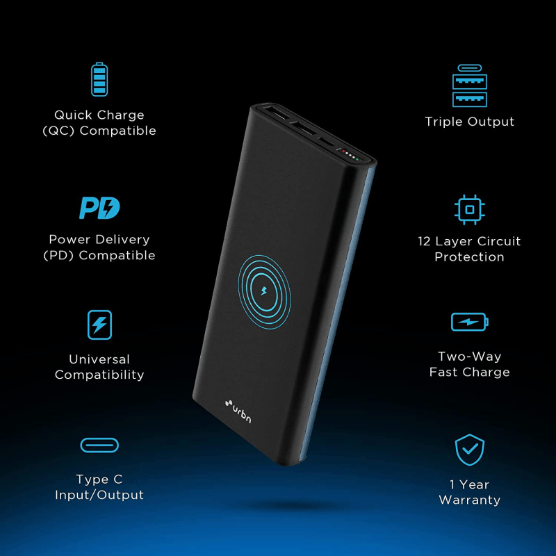بنك الطاقة اللاسلكي URBN 10000 مللي أمبير بقوة 15 واط ليثيوم بوليمر بريميوم الإصدار الأسود
