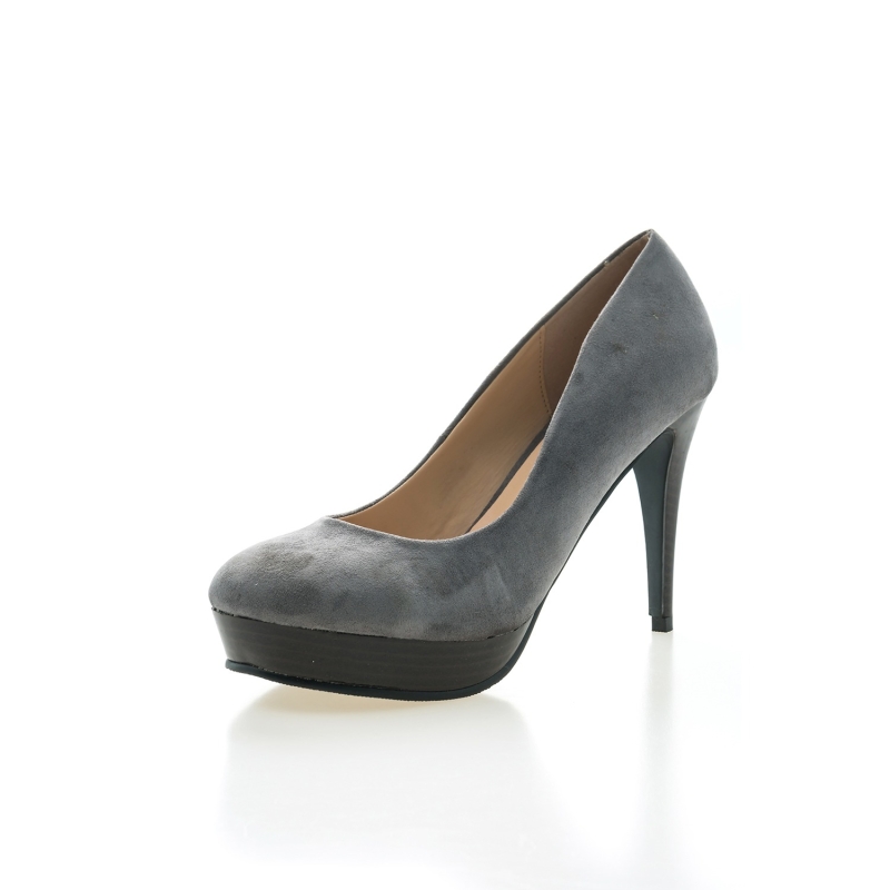 زوج من المضخات الصلبة الرمادية ، لديه كاحل منتظم وظهر مغلق