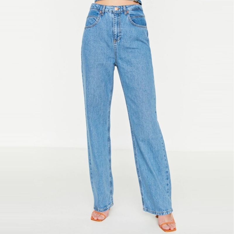 جينز مستقيم متوسط الغسيل للنساء