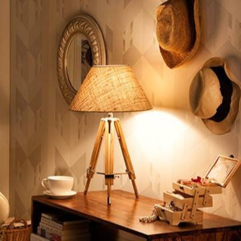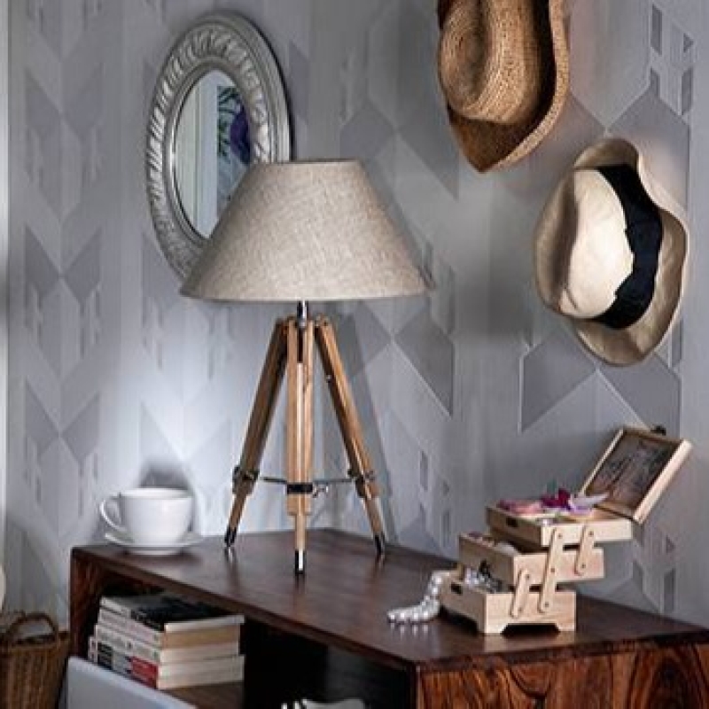 • Wee wooden delight. The Kepler Table lamp, made from teak and topped with a natural fabric shade. A graceful design crafted to complement any room its in.