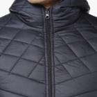 The Navy blue geometric self-design windcheater quilted jacket, has a hood, 2 pockets, a zip closure, long sleeves, a straight hemline, and polyester lining.