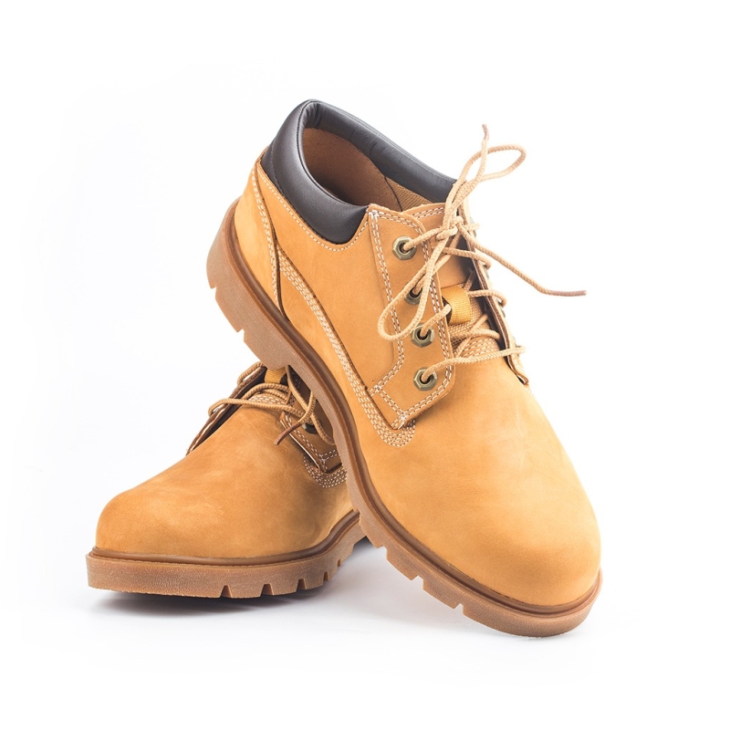 • A pair of round-toe Yellow Boots, has regular styling, lace-up detail