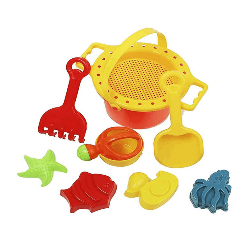 • Package Contains: 1 Bucket, 1 Star Fish, 1 Fish, 1 Octopus, 1 Duck, 1 Sand strainer, 1 Sand Shovel, 1 Sand Rake, 1 Watering Can.